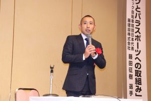 パリ大会含めパラリンピックの自転車競技に日本代表として5大会連続出場を果たした稚内出身の藤田征樹さん(40)=藤建設=が21日夜、サフィールホテル稚内で開かれた道銀親睦団体「らいらっく会」の新年会で講演し、競技に向かう自身の考え方などについて語った。