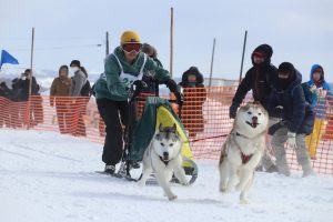 昨冬は大会数日前に最高気温が10度に達するという季節外れの暖気で中止となったが、今季は年明け以降の大雪で最高のコースコンデションが整った大会は、午前10時半からの2頭引きからレースが始まり札幌や旭川などから出場した5チームが1㌔コースを駆け抜けゴールを目指していた。続いて2頭引きシニアレース、4頭引きレースなどが行われた。