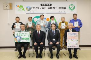 中場直見部会長は「観光協会のレンタサイクルも年々貸し出し台数が増えており、益々自転車の受け入れ環境の向上が求められている。自転車を利用する観光客へサイクリスト応援団をはじめとした取り組みを積極的にし情報発信に力を入れ、きた北海道ルートの認知度向上に努めて参りたい」などと挨拶したあと、協力会社の錦産業、山本建設、ササキ、佐々木・カユカワJV、市、稚内観光協会の代表者に任命証が手渡された。