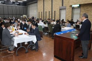 参加した120人を前に、河原史敏会長は今年の春闘について4月15日現在、連合本部の集計で前年より良い回答があることに触れ「中小がこの流れを維持できるかどうか、トランプ関税の影響などもあり正念場である。メーデーのスローガンを確認し交流会で親睦を深めましょう」などと挨拶。続いて工藤市長が「賃金が上昇気流に転じたと受け止めているが、米国による関税措置などが水を差している状況にある。この状況から脱却する契機となるメーデーにして欲しい」、川原田衆議は「物価高に賃金が追い付いていない。メーデーを大切に働く人が皆んなで声を上げる必要がある」などと挨拶した。