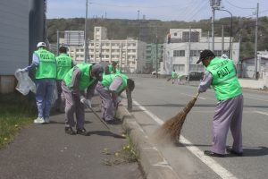 藤建設の社員が17日中央埠頭周辺で清掃活動を行った。