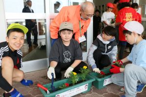 このあと、児童たちはプランターに土を入れ、丁寧にマリーゴールドなど植えていた。