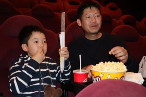 朝一番で上映のディズニー映画「リロ&スティッチ」には親子連れが目立ち、父親と一緒に来ていた中央小2年生の男の子は「映画館は大好き。ポップコーン食べなから映画を見るのが楽しい。8月にあるクレヨンしんちゃんも見に来たい」と話していた。