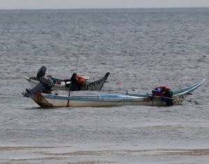 16日は磯でナマコ漁をしていたの数隻だけで、大半はノナ漁をしていた。