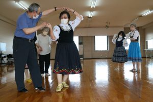 サークルメンバーの7人は、青柳さんからルーマニアの「シェレーニ・マジャロシュ」などの曲に合わせステップなど約2時間、レッスンに取り組んでいた。