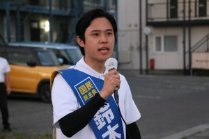 参院選で国民民主党から立候補した鈴木雅貴氏(33)が10日夜、稚内入りし、シティわっかない店前で街頭演説し「子どもが大人になり、この日本で生きたい、働きたい、結婚したいと思える社会にならなければならない。今変える、今変えないと失われた30年がさらに伸びてしまう」などと支持を訴えた。