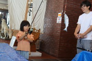エレキギターの弾き方など教わった山本詩織さん(潮見が丘小3年)は「初めてやってみて楽器の弾き方などわかりました」と喜んでいた。