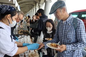 バスのスルタン・アブドゥラヒモフさん、ピアニストのオレグ・ポリャンスキーによる「フィガロの結婚より〝もう飛ぶまいぞこの蝶々〟」を始まりに、ピアノとバイオリンによる「ユーモレスク作品101―7」などの演奏と歌唱があり、聴衆はプロが奏でる音楽の虜になっていた。