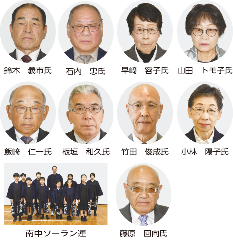 〈社会福祉〉▽石内忠氏(81)=宝来5・会社員=稚内市身体障害福祉協会長として、協会の発展と地域福祉の向上に貢献すると共に、地域行事の実施などで障がいのある方々の社会参加の促進に尽力している▽早﨑容子氏(80)=富岡5・無職=は民生委員・児童委員として20年以上の長きに亘り、住民に寄り添う地域の相談役を担い、要保護世帯の自立更生援助活動に尽力している▽山田トモ子氏(75)=こまどり5・無職=は民生委員・児童委員として20年以上の長きに亘り率先して活動に取り組み、地域住民の福祉向上に貢献している。