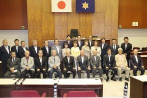新庁舎完成に伴い現議場の閉場式が29日午後、9月議会閉会後にあり、現役議員や元議員、工藤市長ら関係者40人余りが出席し58年に亘って論戦を交わした議場に別れを告げた。