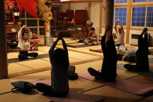 龍海寺でヨガと座禅のイベント 先週末の夕方、15人参加