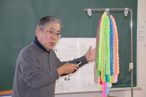 同校の但田勝義教授を講師に、大韓航空機撃墜事件やそれを契機に続いている子育て平和の灯など事件や活動を通して平和を考えようと開かれた。