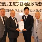 2025 年 10 月 7 日 / 最終更新日時 : 2025 年 10 月 7 日 wakkanaipress ニュース 医療、高規格道路整備など 立憲支部政策懇 工藤市長から要望 立憲民主党北海道第12区総支部の宗谷地区政策懇談会が6日、日ロ友好会館で開かれ、川原田衆議らが管内7市町村の関係者と地域課題を共有した。 稚内市からは工藤市長ほか職員らが参加し市長から川原田衆議に地域医療体制の充実、 […]