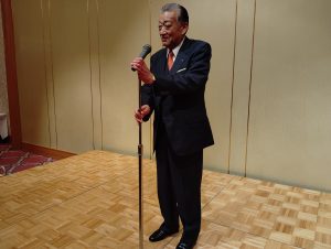 議員総会後に開かれた懇親会では副会頭職を勇退した今村光壹氏が「すっぱり首になった今村でございます。18年という在職期間でしたが改めてよく務めてきた」と万感の思いを述べた上で「この先は厳しい時代になる。乗り越えるために商工会議所はなくてはならず皆さんの知恵を結集し難関を突破していただきたい」などと新しく選任された執行部・議員・職員にエールを送っていた。