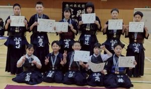 個人戦では坂口秋太君、古川華帆さん、熊谷君が準優勝、椿大和君、古川宗征君(東小6年)、坂口君が3位に入賞した。