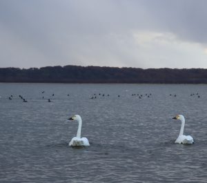 今秋のハクチョウは昨シーズンより1日遅い10月6日に先発隊の23羽が飛来し、22日には最多1999羽まで増えた。天候によって増えたり減ったりを繰り返し、29日朝のバードハウス前での2羽を確認して以降、11月5日まで目撃されていない。