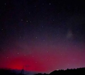 今月9日〜11日に太陽フレアが発生し、勇知地区で12日午後7時過ぎ、北の空に赤いオーロラが現れ、スマホのカメラで撮影した住民は「肉眼では薄っすら赤くなった程度でしたが、スマホのカメラで撮影すると上手く赤い空が撮れた。とても幻想的でした」と話していた。