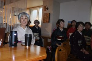 稚内和服でおもてなし実行委員会(竹内ひとみ代表)による着物でランチ会がこのほどゲストハウス「モシリパ」であり、食事後の交流会で脳卒中を経験した女性が、後遺症と向き合いながら日々の前向きな暮らしなどについて語った。