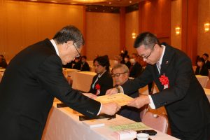 主席した45人を前に中田会頭は「企業表彰を受賞されます皆様は永年に亘り企業経営と地域の発展に寄与され地域経済を支えてこられた方々であり、勤続従業員表彰は、企業の発展の担い手として中心的な役割を果たされた。技術革新が進むなかにあっても企業の基本となるのは人であり地域発展のためご活躍されることを祈念致します」などと挨拶。