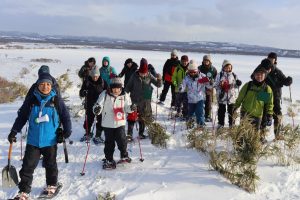 続き稚内、豊富などで自然ガイドとして活動する嶋崎暁啓さんをガイドに参加者はスノーシューで大沼周辺に生息する動物が雪に残した足跡や高台から結氷した大沼を見るなど小1時間ほど散策。雪上車体験などもあり、バスで市内に戻り、希望する飲食店4店で海鮮丼などを食べて、温泉に入った。
