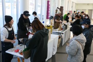 最終日の14日にキタカラで開かれたイベントには、さいほく珈琲、珈琲時間など市内はじめ中頓別、美深、三重から勇知いもを材料としたコーヒーを出品したSIMPLES COFFEEなど6店舗出店し、開始の午前10時から混雑し、ロビー内はコーヒーの良い香りが漂う中、こだわりのコーヒーを味わう人たちで賑わっていた。