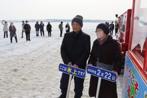 氷った沼に到着後、吉田さんは自身の情熱で大沼に呼んだハクチョウが毎年春と秋に飛来するようになったことや稚内の旬の食べ物などを紹介し「また稚内に観光で遊びにきてください」と話した。