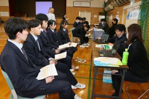 このあと、生徒たちは宗谷岬牧場、稚内ヘルパー利用組合、ホクレンなど11社の企業説明ブースで1社当たり13分間、業務内容などについて説明を受けていた。